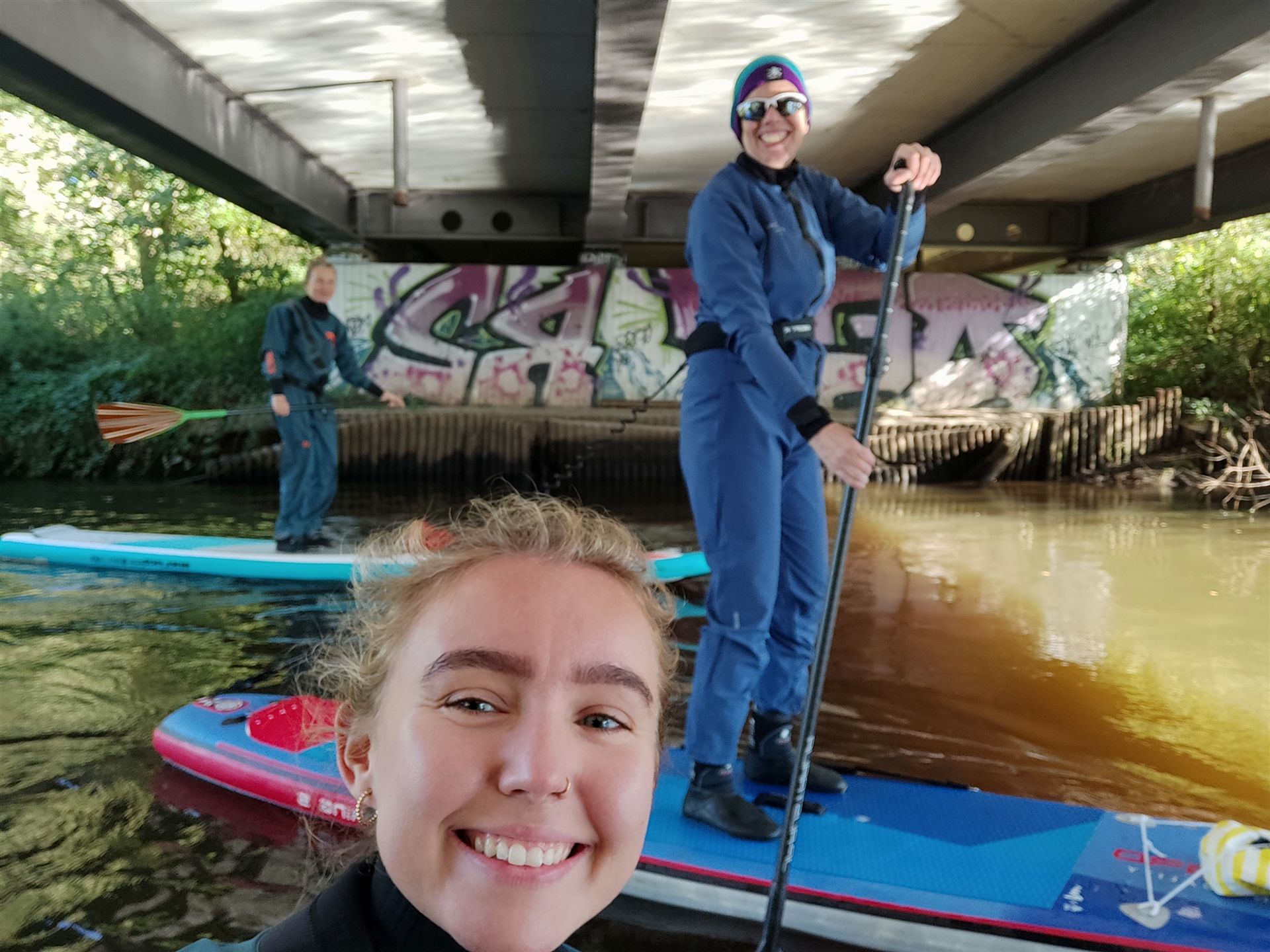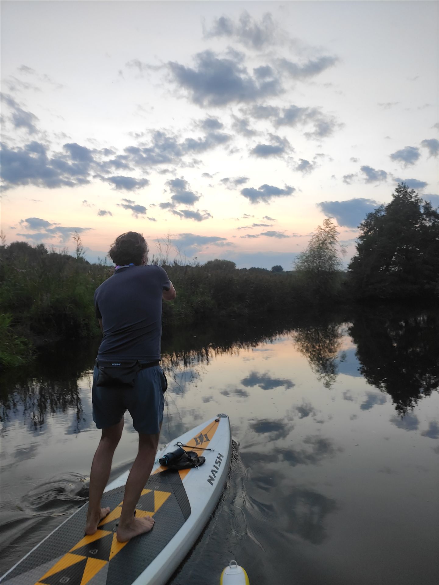 Starte Deine Trainingsrunde flussaufwärts gegen die Strömung. Umgestürzte Bäume bilden hin und wieder ein natürliches Hindernis mit kleinen Stromschnellen. Und an manchen Stellen ist sie sehr flach, so dass Deine Finne in Ufernähe Grundberührung haben kann.